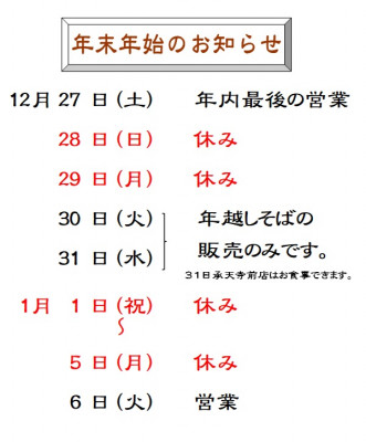 【承天寺前店】年末年始の営業日