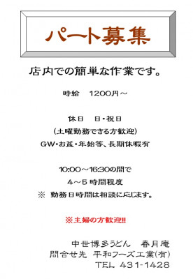 【本店】パート募集